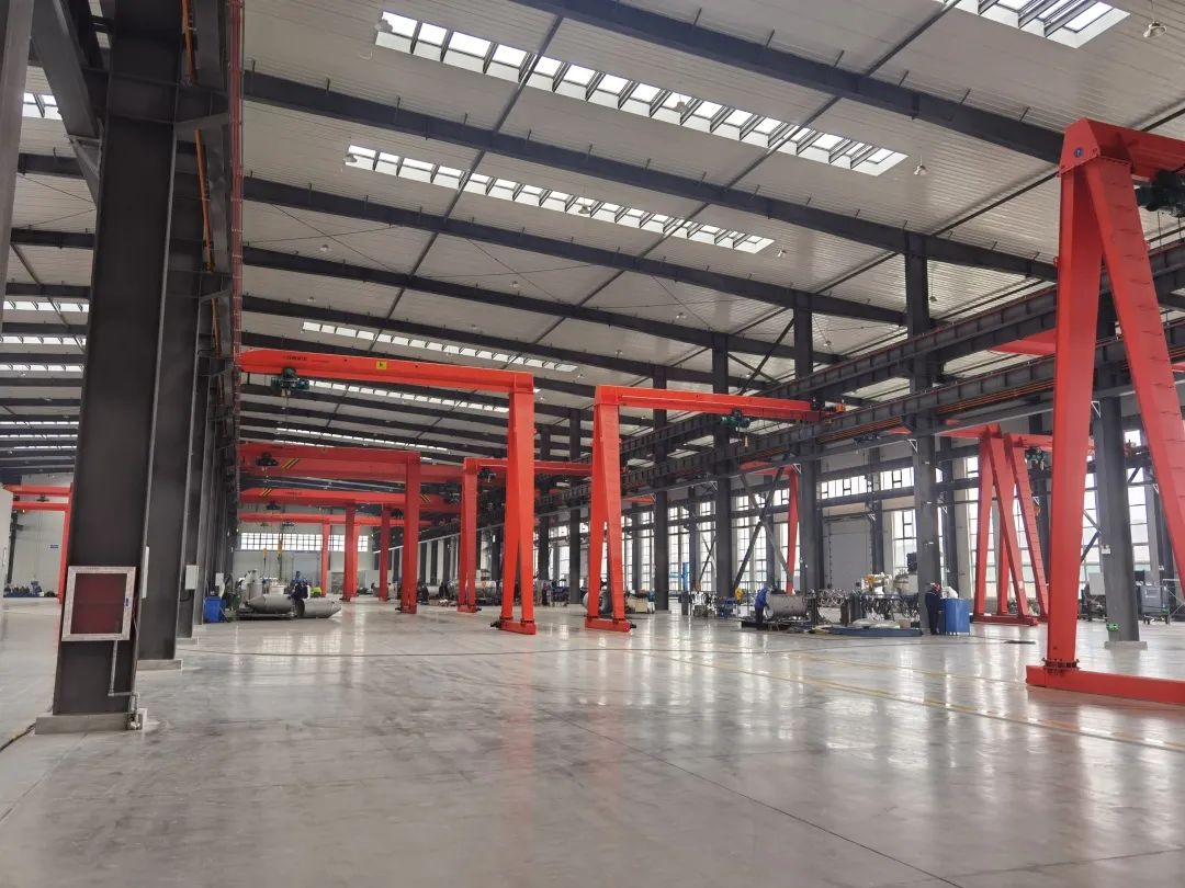随后,曼国化工带领刘伟等一行人参观了曼国新厂房。首先映入眼帘的就是一台台大型龙门起重机,厂区干净有序,设备均满载生产,工人们一片忙碌的景象。