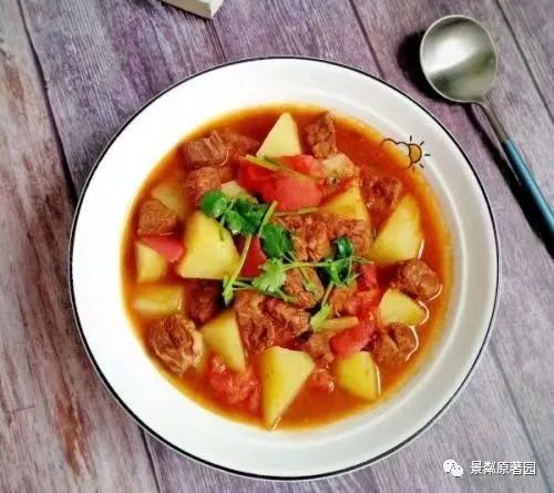紫薯米饭、西红柿土豆炖牛腩