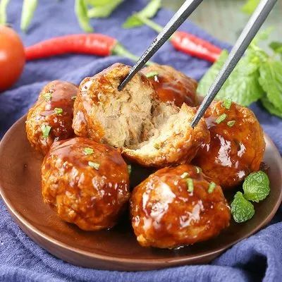 红烧狮子头、西葫芦干丝、山药枸杞筒骨汤、玉米米饭