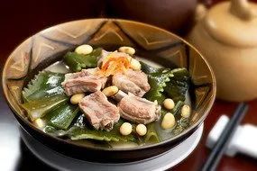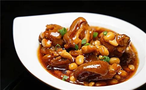 黄豆炖猪脚、红烧家常豆腐、菠菜猪肝汤、珍珠香米饭