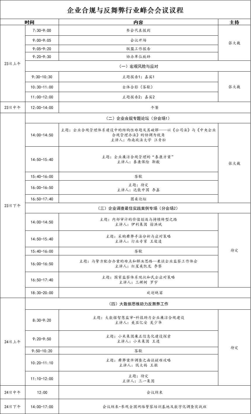 2、议程:本次活动设“企业反舞弊合规主题论坛”及“企业数字化调查实战培训”两个分论坛,参会人员需二选一。