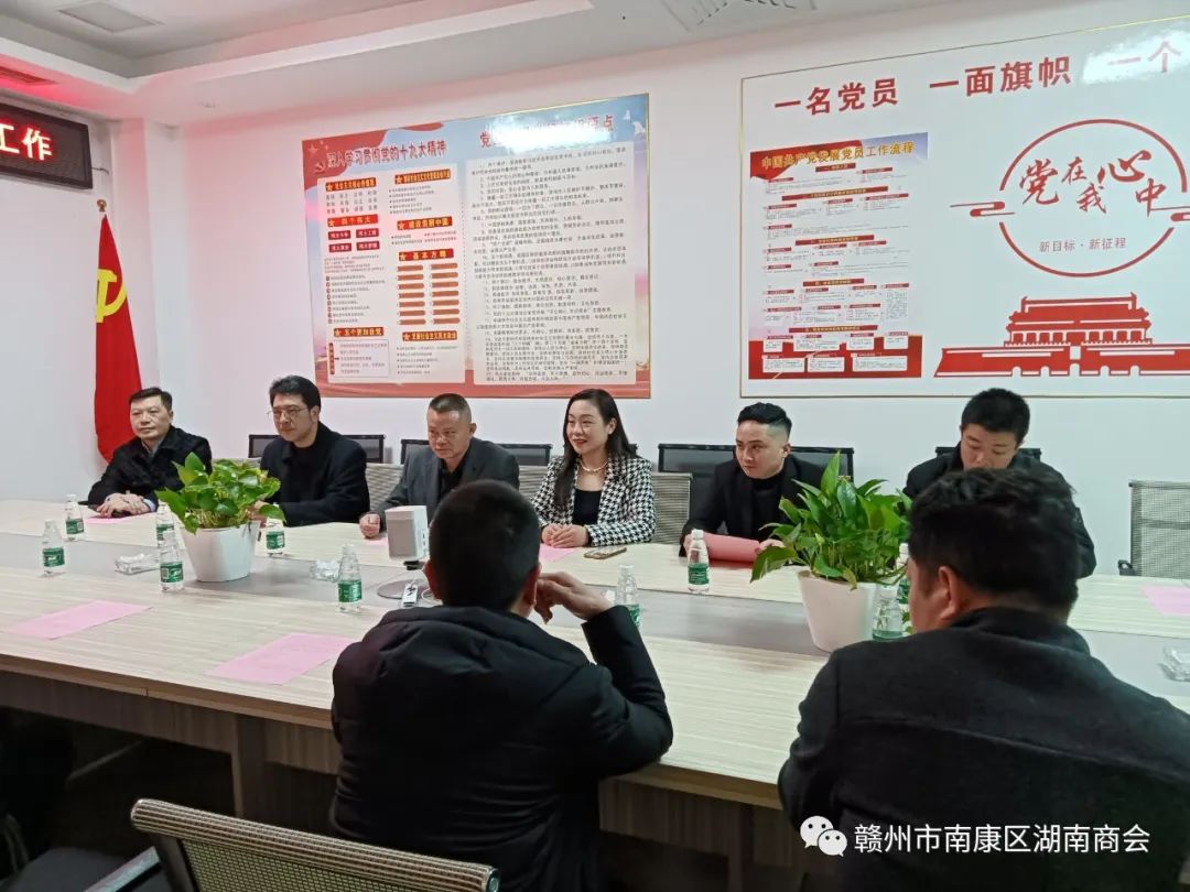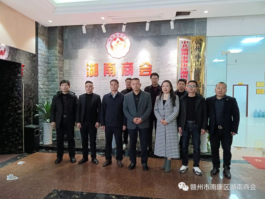 2月12日下午,赣州市湖南商会会长熊建文携值班会长黎赛男、理事彭恩、秘书长唐仁友及秘书处人员一行莅临我商会座谈交流。南康区湖南商会会长蒋勇,党支部副书记蒋海春,本月轮执会长刘建军,执行会长申小武、谭满德、唐游华、李良及秘书处工作人员等热情接待了来访一行。