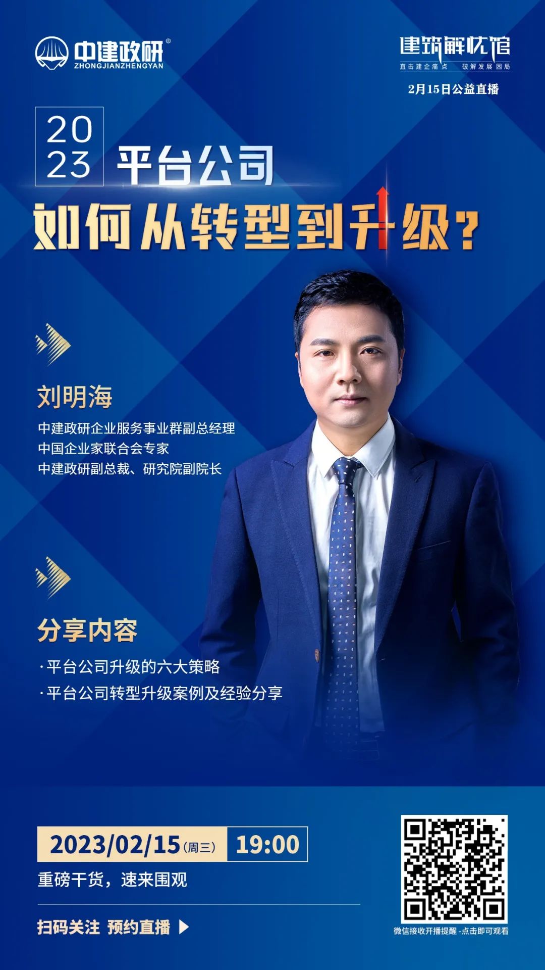 平台公司到底如何从转型到升级,有哪些发展策略与建议?2月15日晚7点,实战专家刘明海老师深刻解读平台公司转型升级实操策略,满满干货内容,一定不要错过!