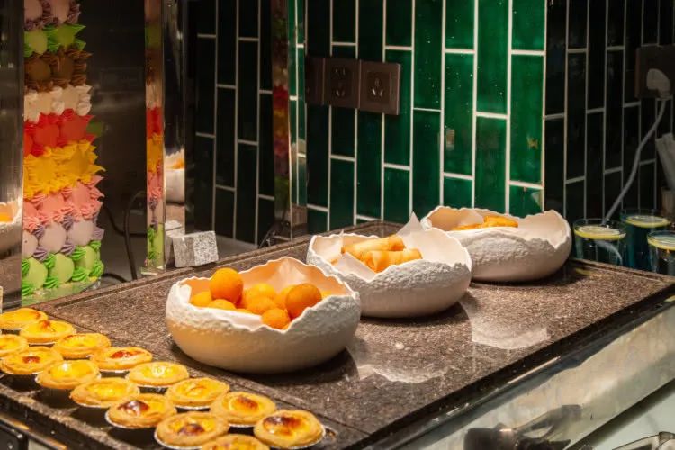 再说说今天的重点,怡海苑南洋氛围满满的全日餐厅,在这里享用今日份的自助大餐,还可玩转180㎡的室内儿童乐园,适合解放双手安心吃饭。