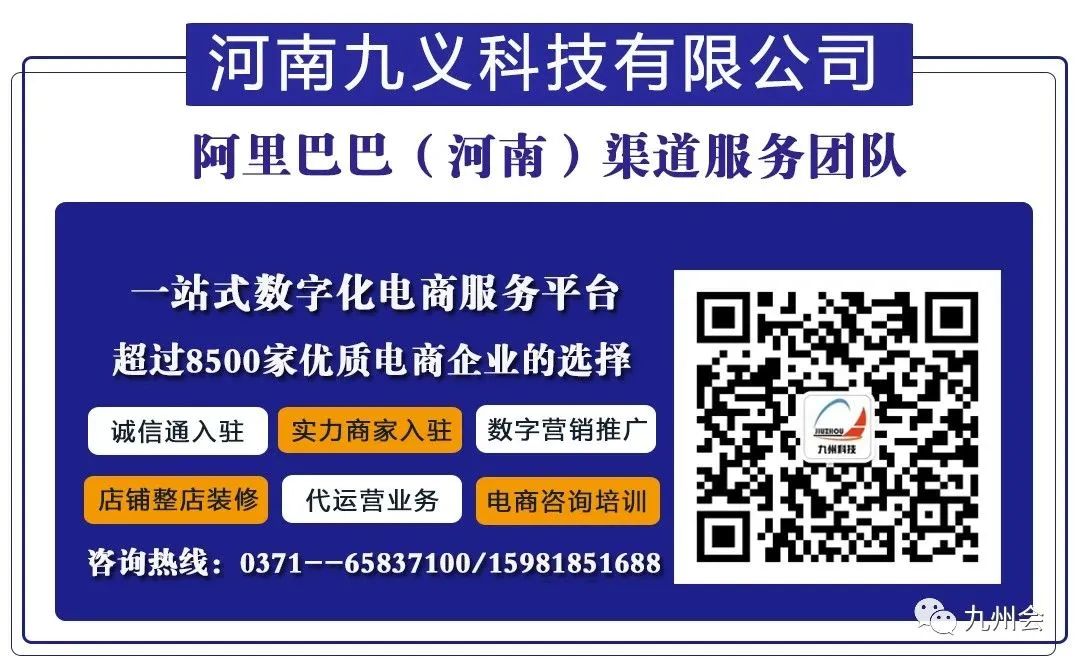 河南九义科技有限公司:中原网商首选服务平台、阿里巴巴(河南)渠道服务团队,现辖新乡、安阳、洛阳、南阳、许昌、开封、商丘等10多家分公司,业务覆盖河南全省。