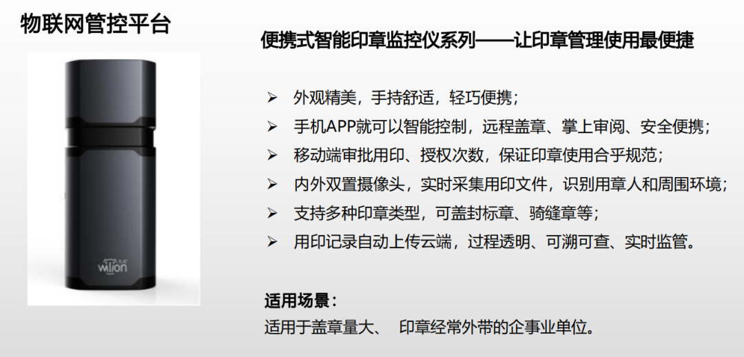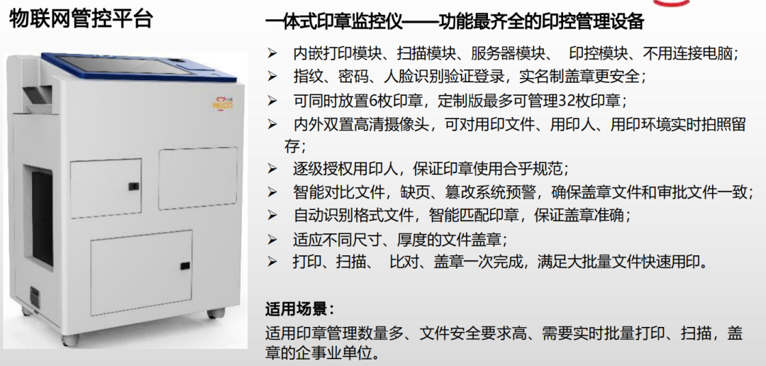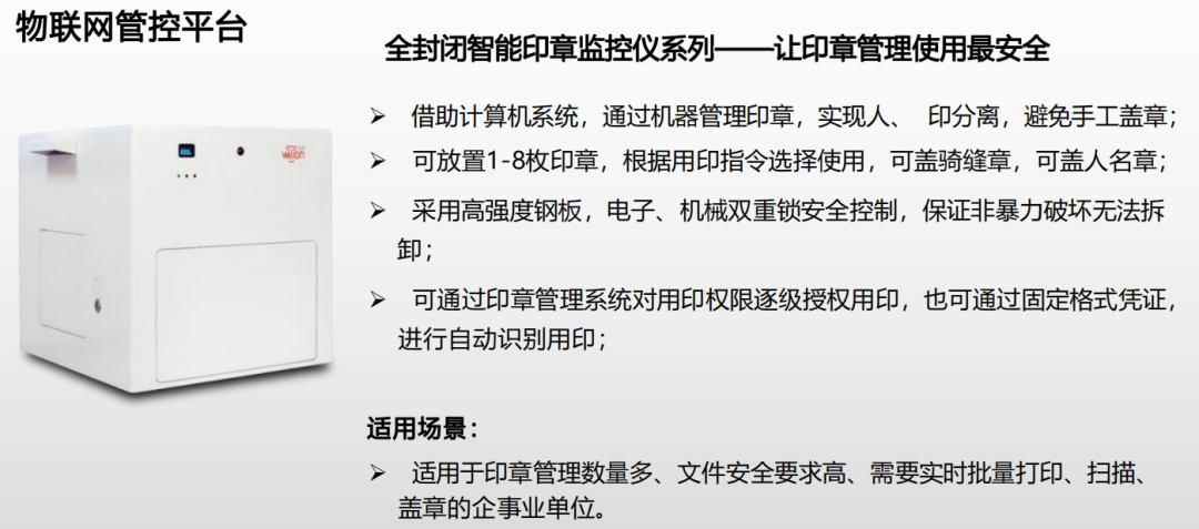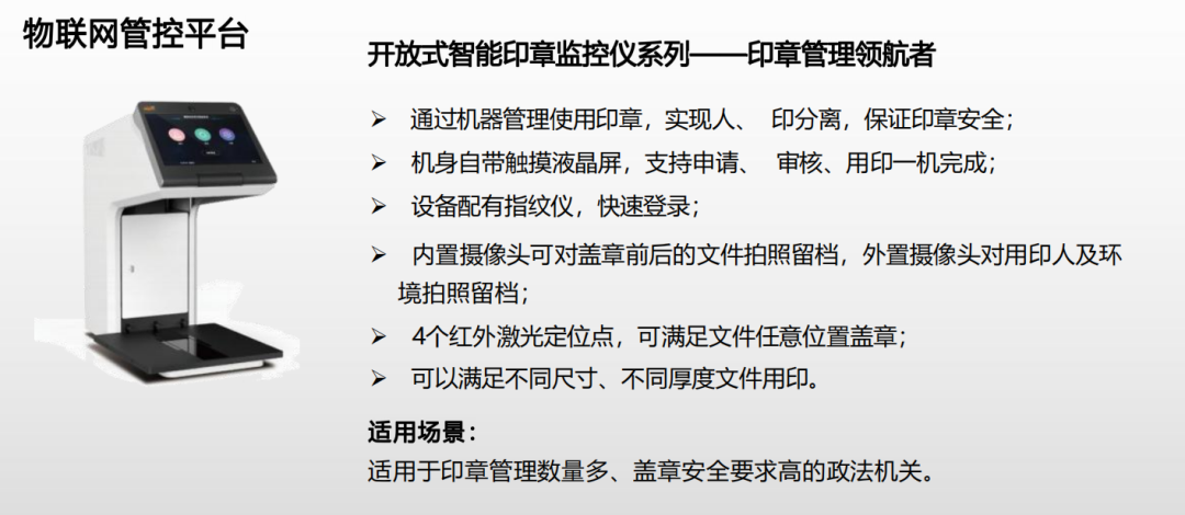 惠朗科技国内最早从事智能印章监管产品研发的企业,主导起草了印控仪行业标准,是首家承担中国建行银行5G物联网平台试点建设的民营企业,通过大量的客户积累和丰富的实战经验,在金融保险、政府机关、交通能源、教育科研、 国防军工、 医疗卫生通讯行业等领域形成高效成熟的印章系统解决方案。