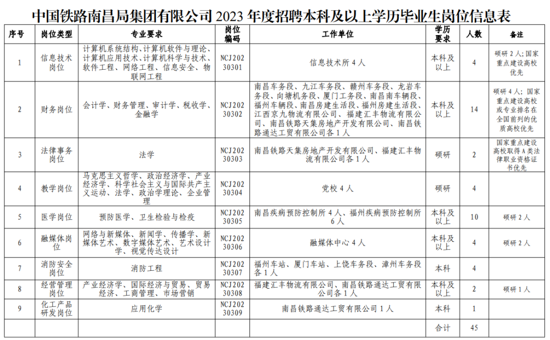 附件:中国铁路南昌局集团有限公司2023年度招聘本科及以上学历毕业生岗位信息表.pdf(75.8K)