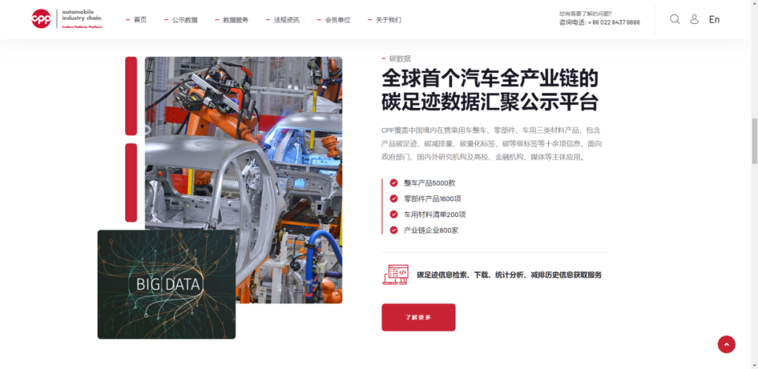 这一平台的上线,将对汽车工业绿色低碳高质量发展提供新的动能。汽车产业链碳公示平台覆盖国内5000余款乘用车以及零部件、车用材料三大类产品的碳排放数据,包含碳足迹、碳减排量、碳标签等10多项数据信息,支持碳足迹信息检索、下载、统计分析、减排历史信息获取等,面向政府部门、国内外研究机构及高校、金融机构、媒体等对象进行开放。