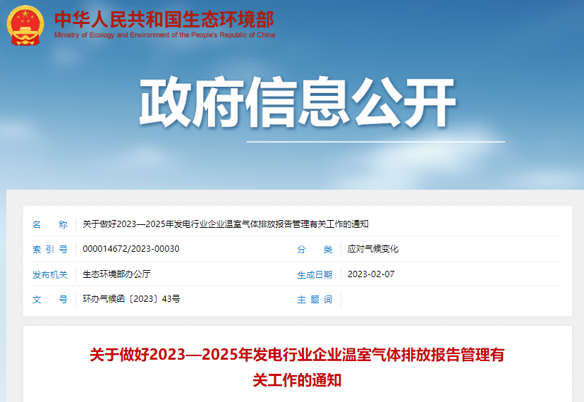2月7日,生态环境部发布《关于做好2023-2025年发电行业企业温室气体排放报告管理有关工作的通知》,以加强企业温室气体排放数据管理,建立健全数据质量管理长效机制。