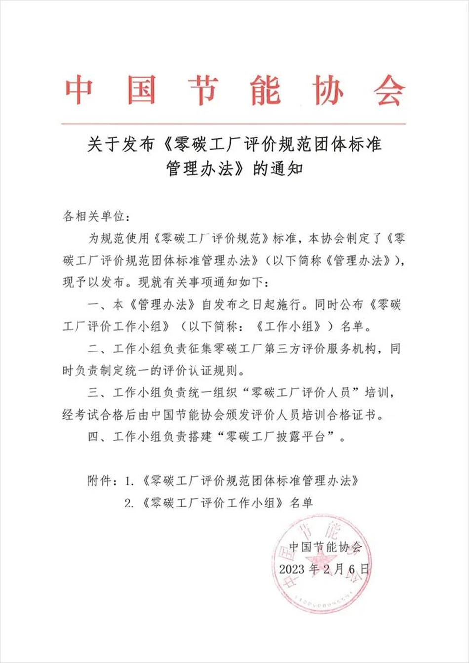 2月6日,中国节能协会发布了《零碳工厂评价规范团体标准管理办法》。其中提出,要建立国内首个零碳工厂评价和披露平台,积极推动地方政府、金融机构出台相关鼓励政策,打造中国零碳高地。