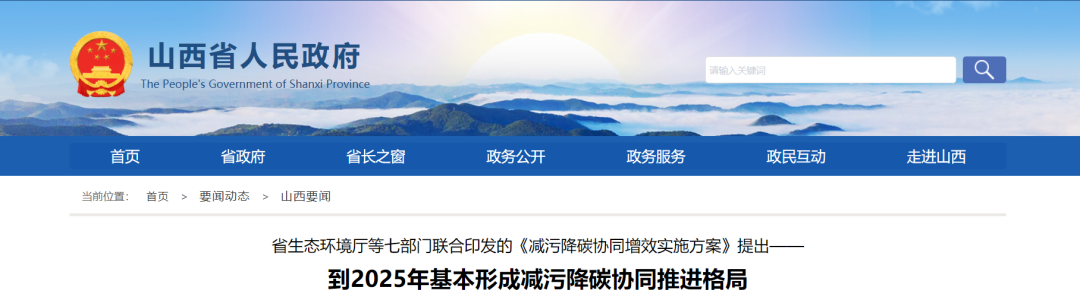 4、《山西省减污降碳协同增效实施方案》正式发布