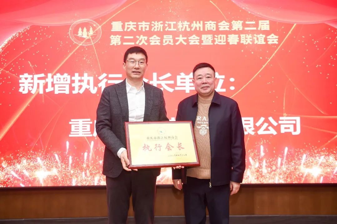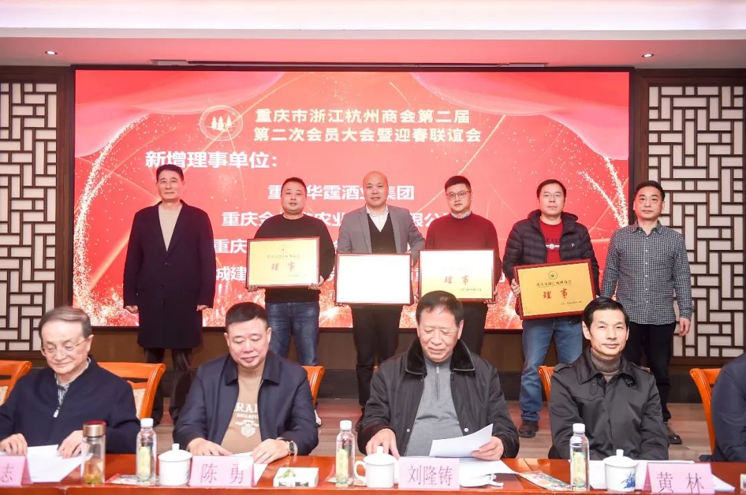 商会自成立以来,积极宣传商会工作思路和发展理念,始终重视吸收新鲜血液,会议中对新增会员单位进行了公示,通过无记名投票选举产生理事单位重庆英甫羲和光电科技有限公司、浙江城建规划设计院有限公司重庆分公司、重庆华霆酒业集团、重庆金丝雀农业发展有限公司并授牌。