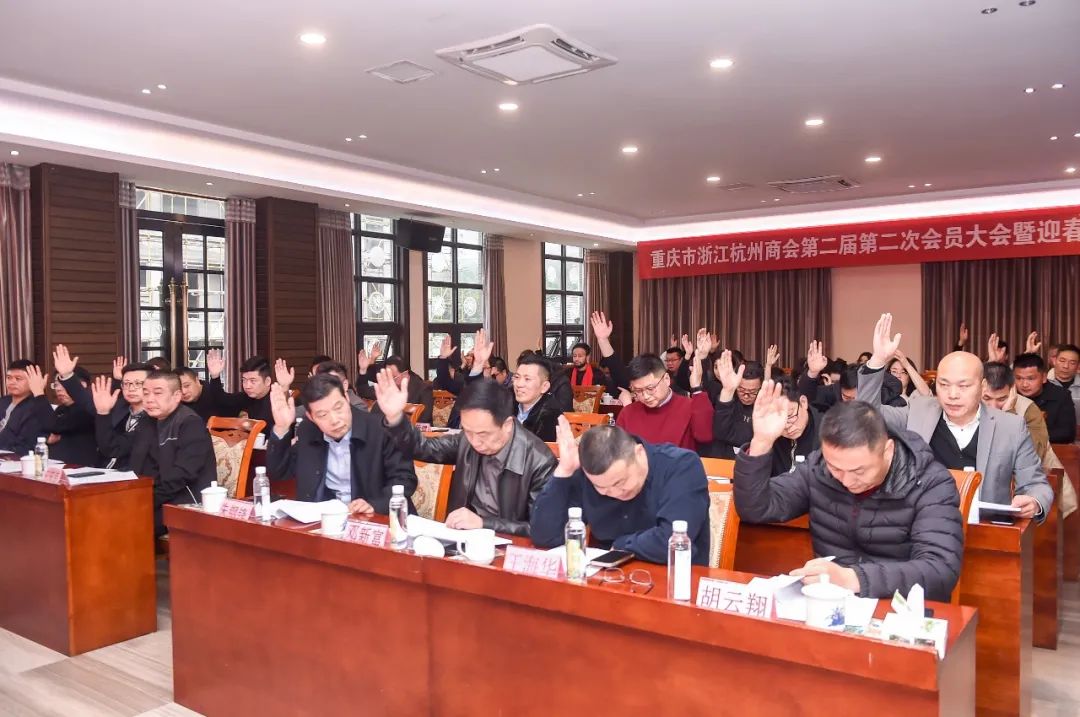 2023年2月12日下午,商会第二届第二次会员大会暨迎春联谊会在重庆南岸区南山塔宝饭店隆重举行。会长、在渝执行会长、常务副会长,副会长、理事、会员共82家会员单位参加本次会议。根据《重庆市浙江杭州商会章程》规定,参会会员单位达到三分之二,符合会员大会开会标准,会议有效。本次会议由执行会长费少寒主持。