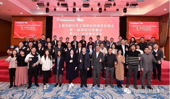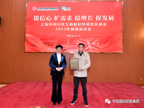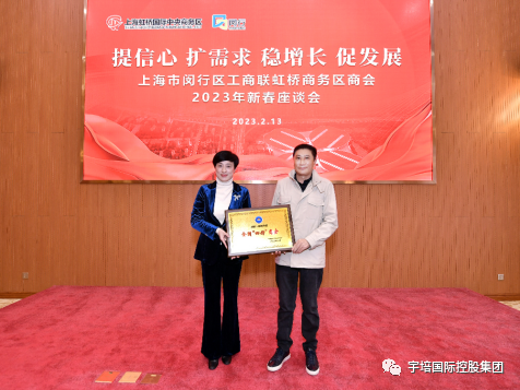 2023年2月13日,上海市闵行区工商联虹桥商务区商会一届四次理事会暨“提信心、扩内需、稳增长、促发展”新春座谈会在宇培国际控股集团举行,闵行区委统战部副部长、区工商联党组书记马佩华,新虹街道党工委书记、商会名誉会长郁小明,南虹桥集团公司党委书记、董事长、商会名誉会长张雄,新虹街道党工委副书记、办事处主任龚悦琦等领导以及商会30多名理事、监事出席会议。虹桥商务区商会会长、宇培国际控股集团董事长李士发出席上述会议并讲话,同时领取了全国工商联“四好”商会、上海市工商联“四好”商会两块铜牌和闵行区工商联副主席的牌匾以及光彩事业捐赠证书。