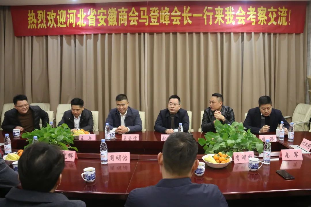 张传厚会长对马登峰会长一行的到来表示热烈欢迎!并就江西省安徽商会管理制度、商会运作、会员服务、党建工作、会长班子如何发挥作用等方面作了详细的介绍。他说,天下徽商一家亲,两地商会同根同源、同愿同行,大家共举徽商旗帜,今日家人到访倍感亲切。希望今后赣冀两地徽商之间加强友好往来,延续兄弟情义,相互学习发展。