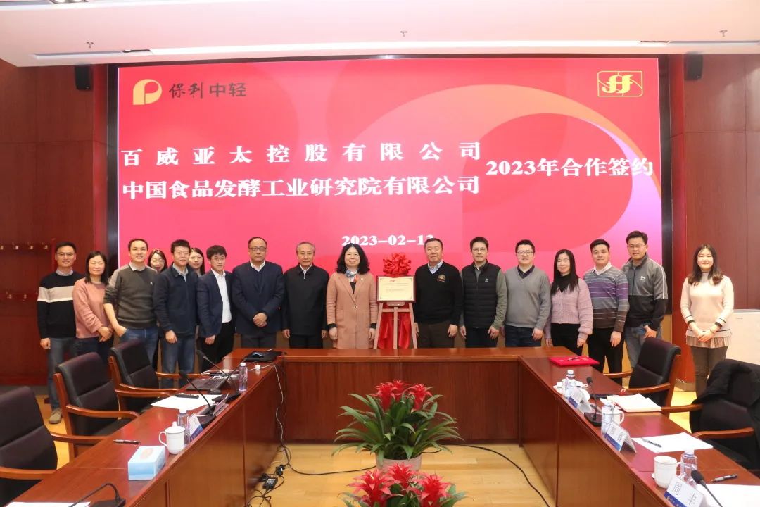 2023年2月13日,中国食品发酵工业研究院有限公司与百威亚太控股有限公司举行了啤酒技术创新研发中心的揭牌仪式,保利中轻总经理助理、中国食品院党委书记、总经理肖丹与百威亚太供应链与物流首席执行官程衍俊总裁出席了本次揭牌仪式并代表双方签署2023年项目战略合作协议。
