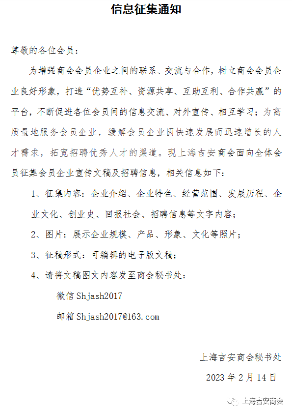 上海吉安商会信息征集开始啦