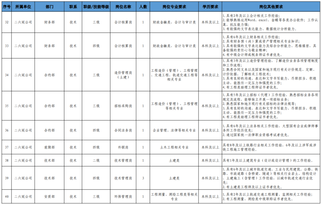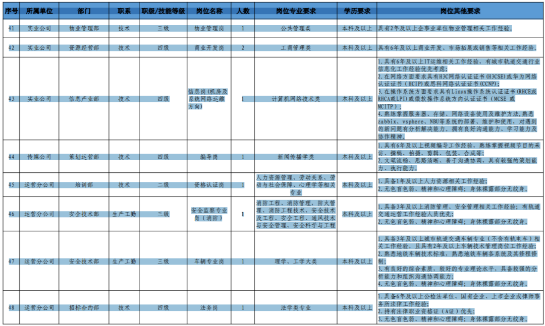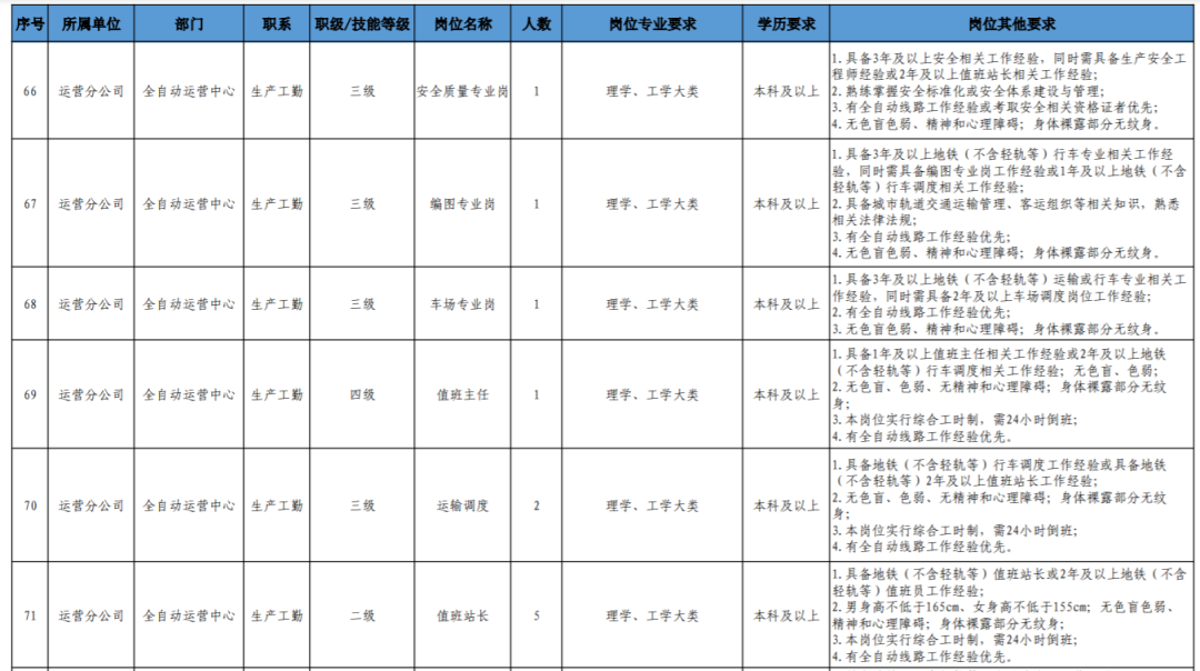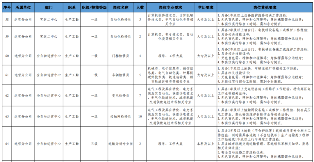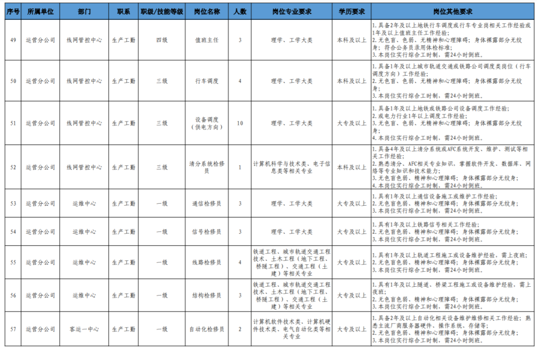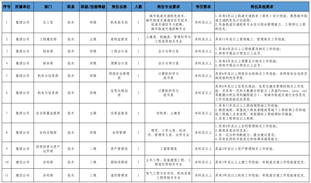 (4)具备轨道交通行业背景和相关工作经历、条件优秀者,可适当放宽学历、年龄或工作年限条件(同一人只能放宽一个条件)。