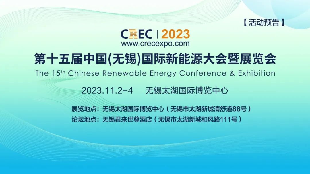 由中国国际商会、江苏省贸促会和无锡市人民政府主办的“第十五届中国(无锡)国际新能源大会暨展览会”将于2023年11月2-4日在无锡太湖国际博览中心举行。