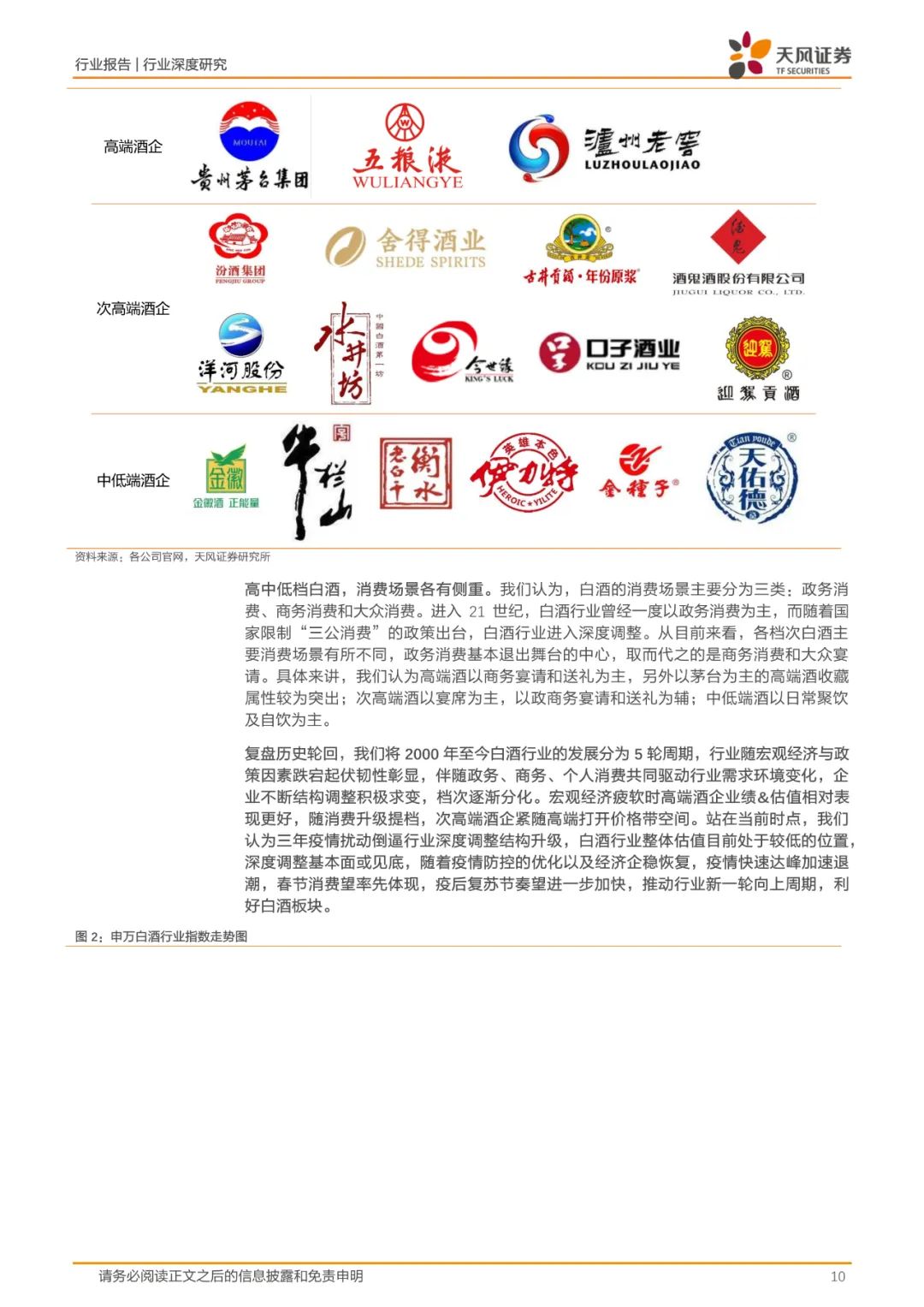 回首历史,伴随政务、商务、个人消费共同驱动行业需求环境变化,白酒企业不断结构调整积极求变,档次逐渐分化。宏观经济疲软时高端酒企业绩&估值确定性更强,随消费升级提档,次高端酒企紧随高端打开价格带空间。