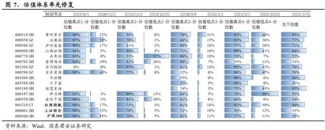 当下估值先行修复,景气预期将持续支撑估值,业绩释放进一步支撑股价。22年底疫情防控放开后,居民对于经济修复预期较强,进而对白酒复苏产生较强预期,白酒估值体系领先于业绩迈入上行区间,考虑到市场对白酒景气度向上的预期没有调整,我们认为景气预期仍将继续支撑估值,伴随居民收入出现实质性修复,白酒板块业绩最快在23年下半年迈入向上区间,有望进一步对股价形成支撑。