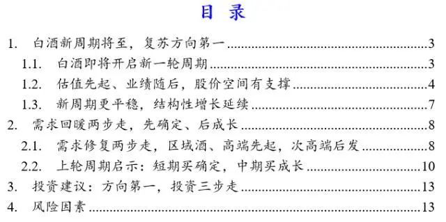 该轮周期将延续上轮周期的消费逻辑,高端化、份额集中逻辑回归。消费升级回归+信用修复逻辑下,白酒高端化+头部集中趋势不变,上市公司成长性仍将领先于行业整体,高端、次高端价位成长空间显著领先于其他价位。