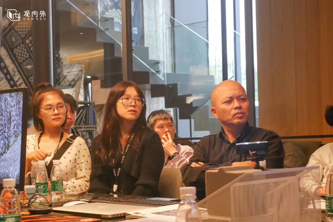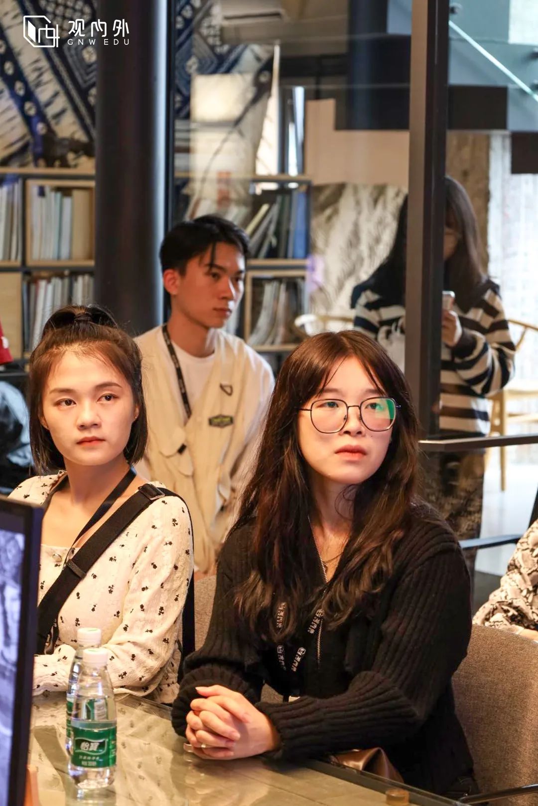 春意盎然,万物复苏。正是踏春的好时节,我们当然也是要走出去看看。2月13日,下午三点,观内外教育联合广东省环境艺术设计行业协会教育专业委员组织了一场设计企业走访交流活动。本次活动由广东省环境艺术设计行业协会教育专业委员会牵头,于广东黑松鼠建筑设计有限公司进行,由广东黑松鼠建筑设计有限公司相关设计师参与活动进行主题分享。本次企业走访活动主要参与人员为环境艺术设计相关专业的在校生,旨在通过参观交流,让学生感受设计企业文化,在与设计师的面对面交流和聆听项目分享的过程中,拓展学生们的设计实战思维。活动开始,由广东省环境艺术设计行业协会童仕静秘书长担任主持人,向同学们介绍了此次活动的目的,我们来到优秀设计企业进行交流学习,是要真听、真看、真感受,在聆听设计师们的分享过程中,通过互动交流达到开阔视野、掌握新知识的学习目的。毕业于广州美术学院建筑学院,并从事设计至今,主要以度假酒店、精品酒店、建筑改造更新、小型建筑等创新设计为主要方向。陈海利老师在此次分享的是“乡村改造”项目——韶关翁源县青云村水口围改造项目。他告诉同学们做建筑设计要有不同项目的思考和设计的思维。并从文化、人文、地域等多方面向同学们介绍。毕业于广州美术学院建筑与环境艺术设计系,以跨界融合的思维方式提供创新的设计理念,创造充满活力的空间体验,注重对每一个项目的深入调研,以系统并严谨的专业手法,力求打造出富有独特情感的体验空间。周海新老师分享的他这些年来做设计师个人的一些历程、心得,给同学们的一些思考和方向。周老师提到做设计要懂得思考,对美的表达;并对自己过去的设计一个积累经历的心得。周老师从生活中的经历为同学们介绍自己对设计的一些见解以及对设计行业的认识,让同学对设计有进一步的了解。对设计总结为“本质—策略—情感—初心”回归设计的初心,为体验者创造视觉的盛宴,触动心灵空间载体