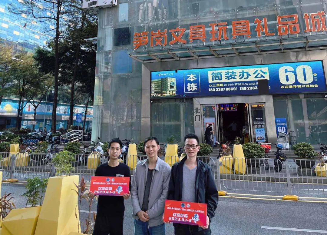 3月12-13日,第22届中国汕头(澄海)国际玩具礼品博览会招采小组一行抵达深圳,进行首站招采地推活动。本次招采推广小组走访了深圳笋岗文具玩具礼品城、华南城、智伟龙义乌小商品批发市场、深圳西部义乌小商品批发城等市场进行本届展会的推广及采购商招募登记活动,介绍第22届玩博会的新亮点、新特色、新服务。此次招采推广小组走访深圳站邀约采购商约200家。