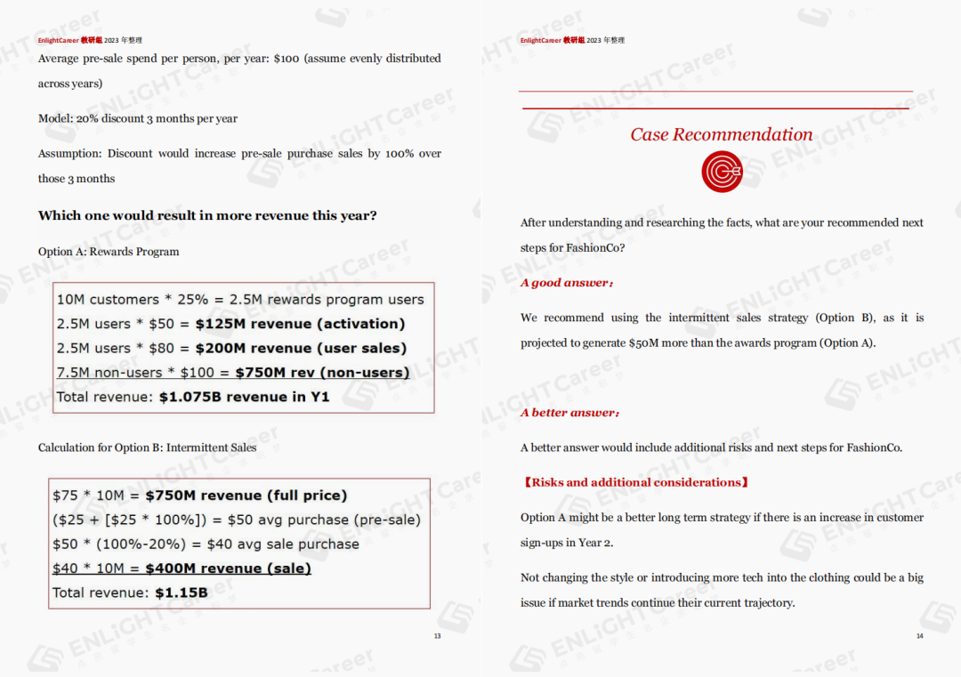 EnlightCareer教研组表示:以上每一道例题,都整理进了本月编辑成册的MBB 2023 Case真题红宝书内。