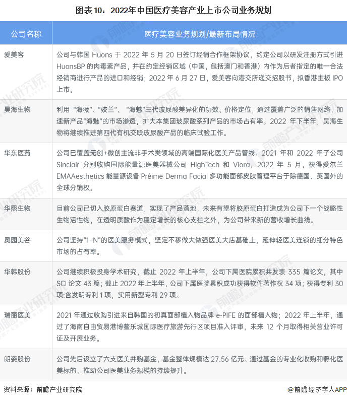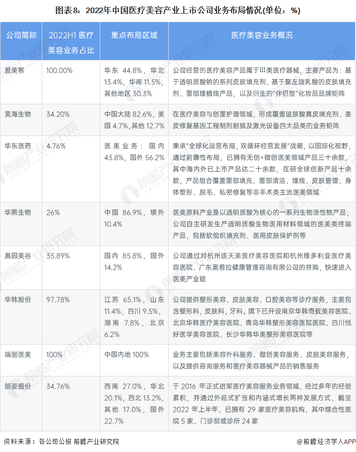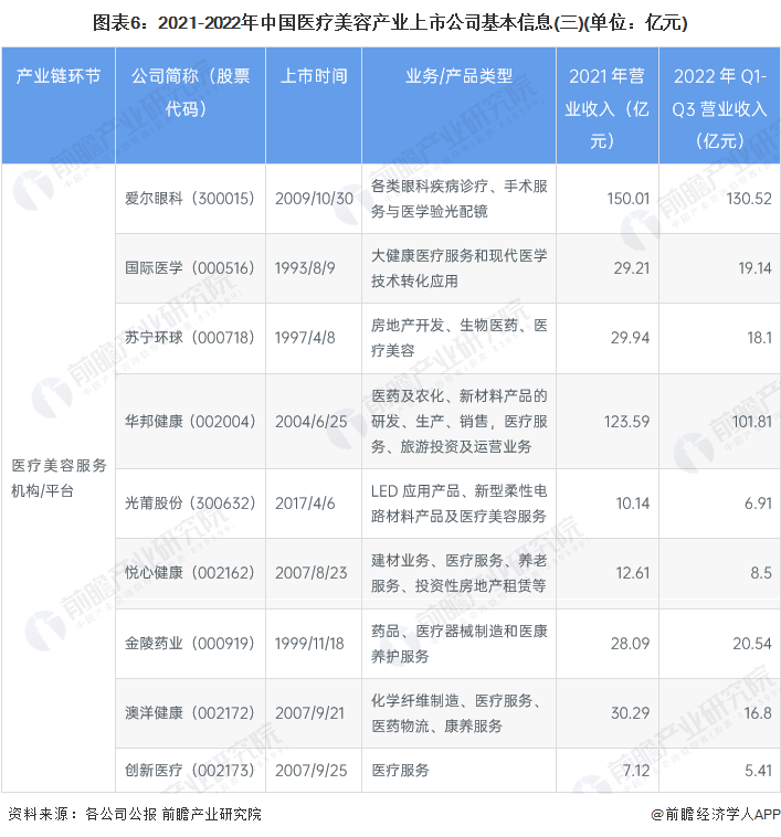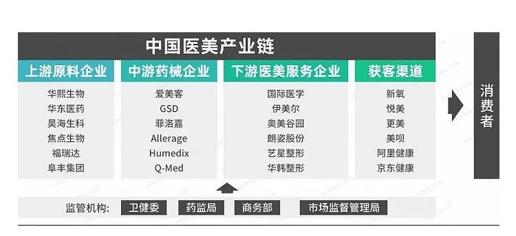 目前整个中国医疗美容产业链包含的上市企业数量较少,具体包括: