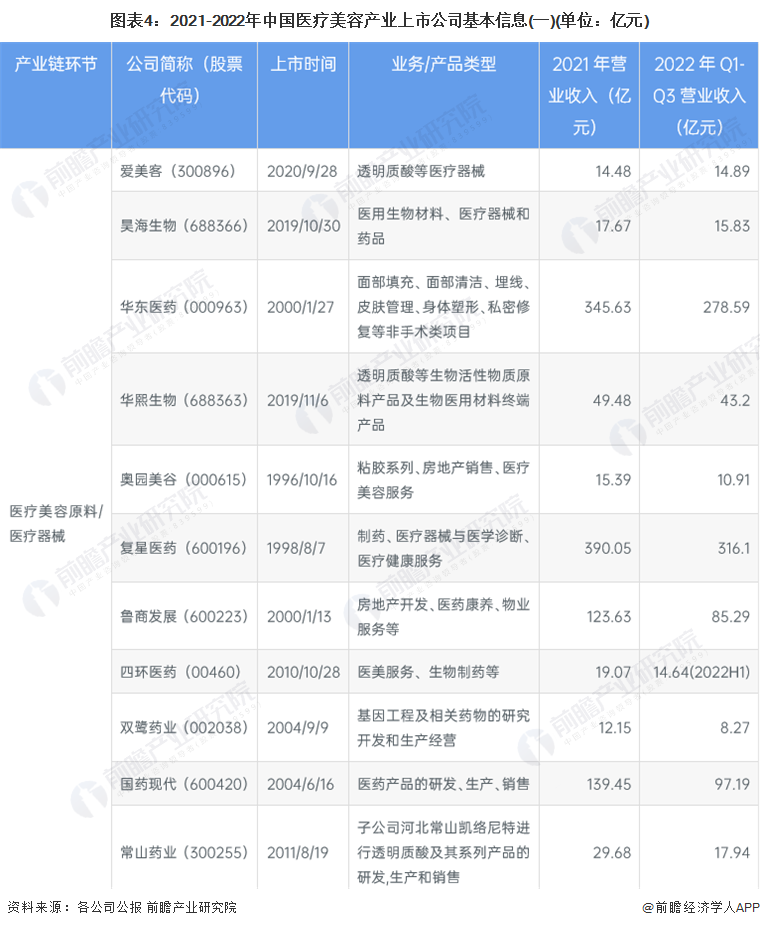 医疗美容原料和器械:爱美客(300896)、昊海生物(688366)、华东医药(000963)、华熙生物(688363)、奥园美谷(000615)、复星医药(600196)、鲁商发展(600223)、四环医药(00460)等;