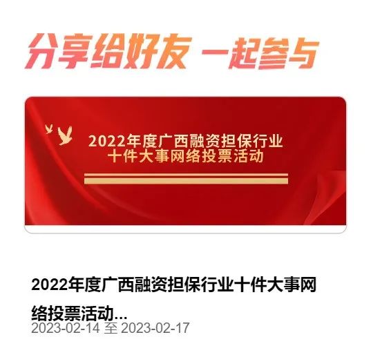广西农担公司多项工作入围“2022年度广西融资担保行业十件大事”网络投票,邀您打call!