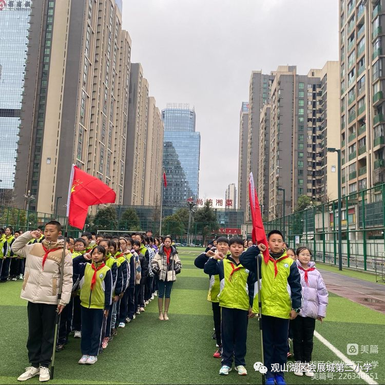 “我是中国人,我爱我的祖国;我是会展二小的小主人,我爱我的学校;我将铭记:“绿色人文,让阅读陪伴生命”的校风;“勤奋乐学,让生命激励生命”的学风;梦想起航,幸福成长!”在队员杨田芯钰的带领下,全体学子举起右手庄严宣誓,声音洪亮,字字坚定。