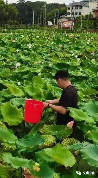 村民喜收莲子,莲藕。莲产业不仅美化了当地环境,还带动当地农民持续增收。