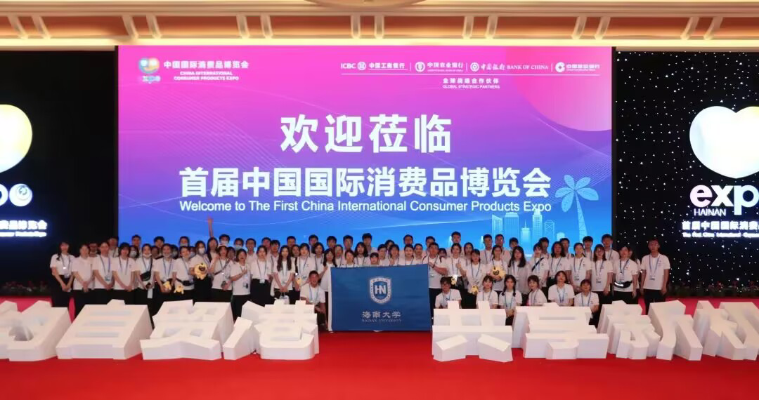 在过去的两届消博会中,海南大学全力配合共青团海南省委、共青团海口市委做好消博会志愿服务保障工作,面试选拔志愿者数百名,选派志愿者参与消博会展馆布置、嘉宾接待、论坛活动、交通服务、疫情防控等各项工作。海南大学青年志愿者们认真负责、勤奋刻苦,顺利地完成了消博会志愿服务工作,完美地诠释了海南大学蓝马甲的志愿服务精神。
