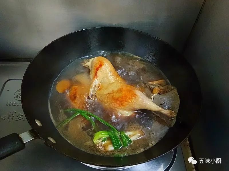 做法6、加入清水与鸭子持平,大火烧沸后改小火烧制。