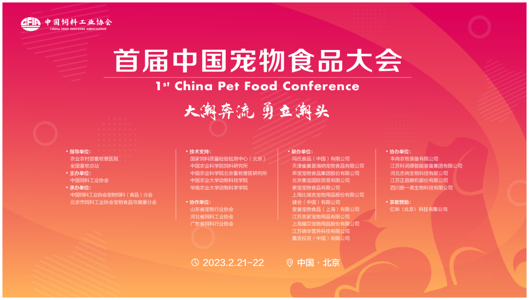 近年来,我国宠物饲料(食品)产业规模不断增加,2021年全国宠物饲料产量首次突破百万吨,2022年达到123.7万吨,同比增长9.5%。蓬勃发展的中国宠物食品行业正在成为现代农业的新业态、新产能、新动能,也面临产业转型升级的历史机遇。为进一步提高宠物饲料(食品)质量安全水平,引导和推动我国宠物饲料(食品)行业全面、协调、高质量、可持续发展,中国饲料工业协会、北京市饲料工业协会拟于2023年2月21—22日在京重启召开首届中国宠物食品大会。