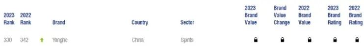 2022年度全球最具价值烈酒品牌TOP10中,洋河股份以64亿美元的品牌价值,荣登榜单第四名。在2023全球品牌价值500强榜中洋河位居全球第330位,在全球烈酒榜单中排在中国的茅台、五粮液、汾酒、泸州老窖之后,位居第五。