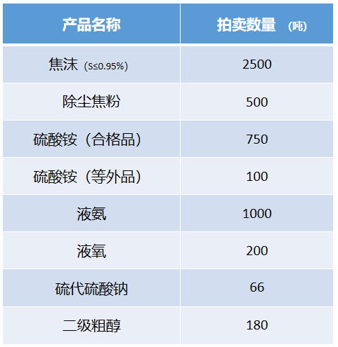 沂州科技有限公司为加强销售计划性,促进客户良性竞争,现决定对本周的焦沫、除尘焦粉、硫酸铵、液氨、液氧、硫氰酸钠、硫代硫酸钠、二级粗醇等产品进行拍卖,相关内容如下: