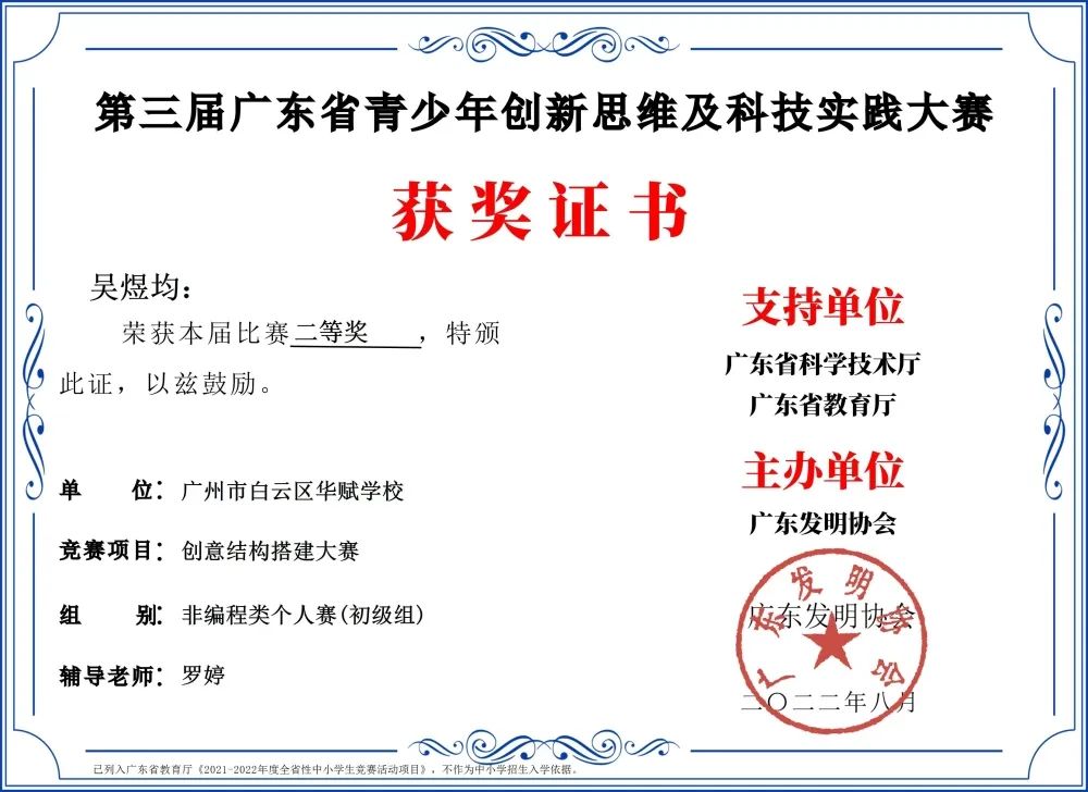 “广东省青少年创新思维及科技实践大赛”获奖选手