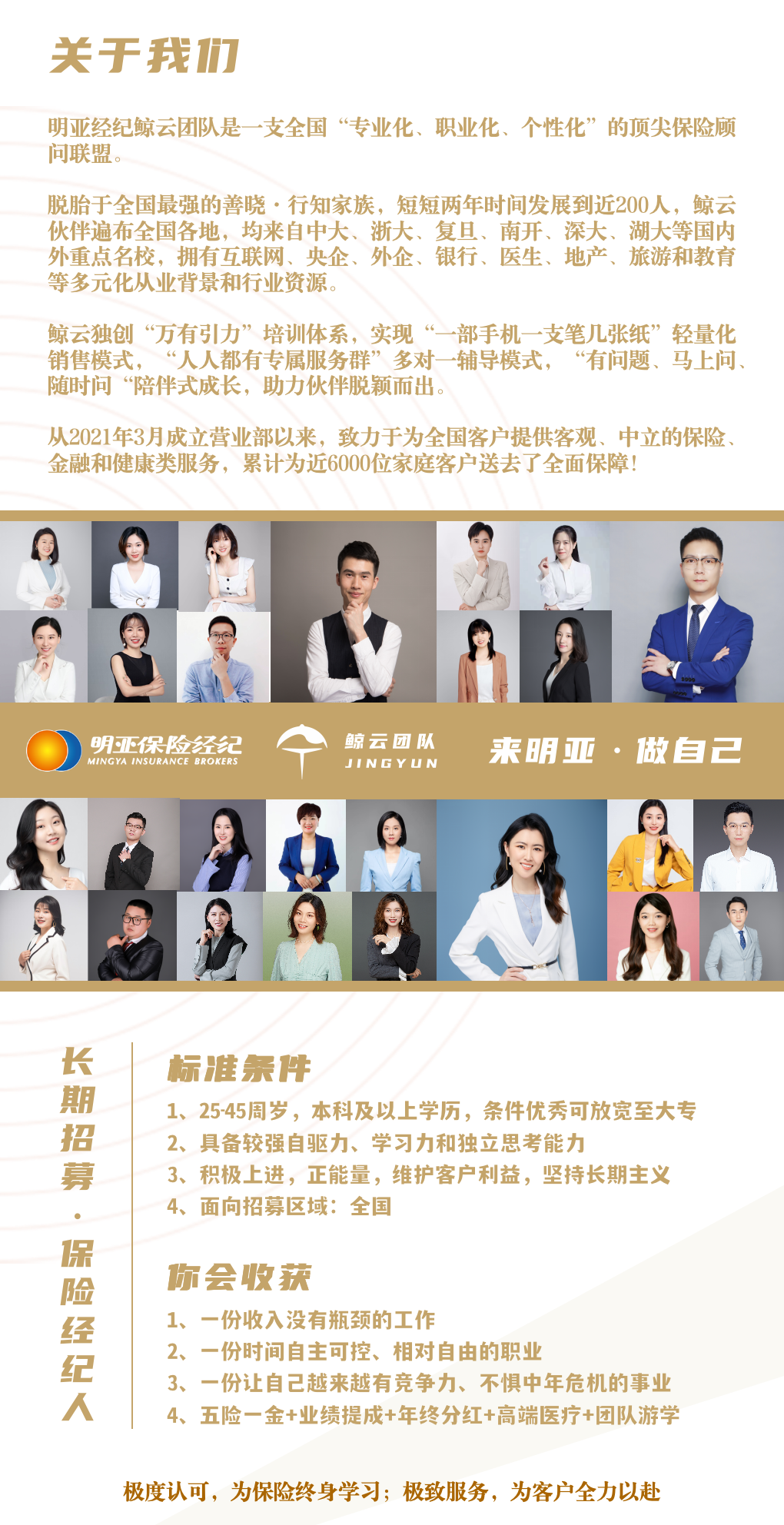 保险经纪人就像创业,可以按自己的想法去工作,自己对结果负责。但创业的成本较低,依托成熟的平台和体系,只需要自己付出时间和精力,既可以让自己不断成长,也可以靠能力赚到钱。
