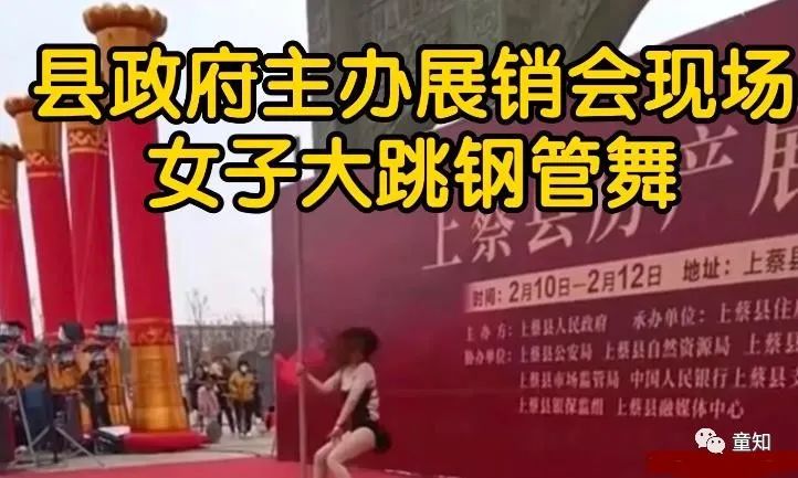 简直辣眼睛,河南县某地政府主办的展销会上居然出现了女子钢管舞表演,大冷的天,一名衣着暴露的女子在舞台上围着一根钢管卖力的扭动着腰肢搔首弄姿,天寒地冻也真难为这女子了。台下驻足着男女老少,都穿着棉衣和羽绒服观看,现场还有不少儿童。