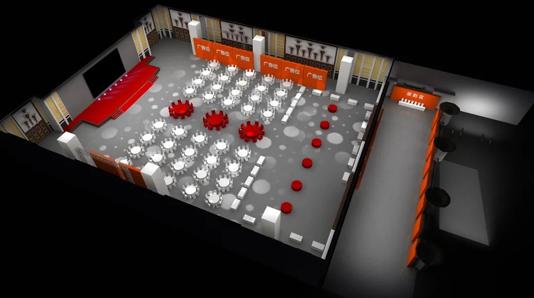 3、晚宴开场前轮播放企业宣传片时长1分钟,使企业品牌得到清晰传播;