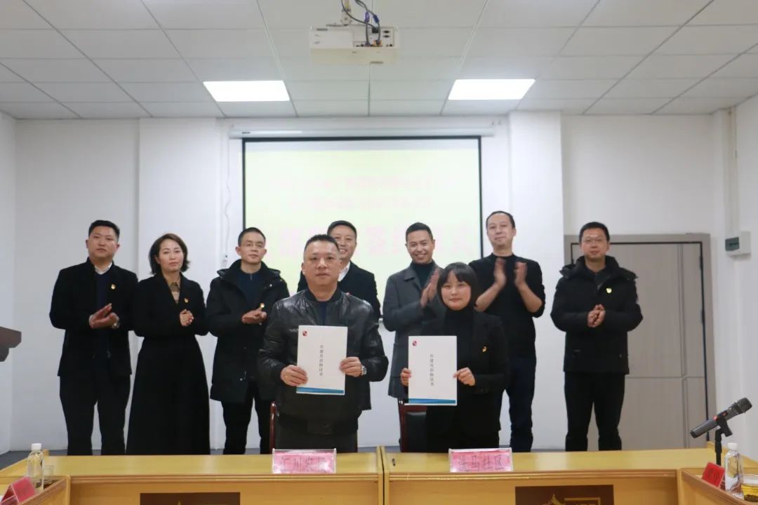 随后,区农投公司党支部副书记、总经理何皓与洗马社区党总支部书记糜伶签订共建共驻协议书。