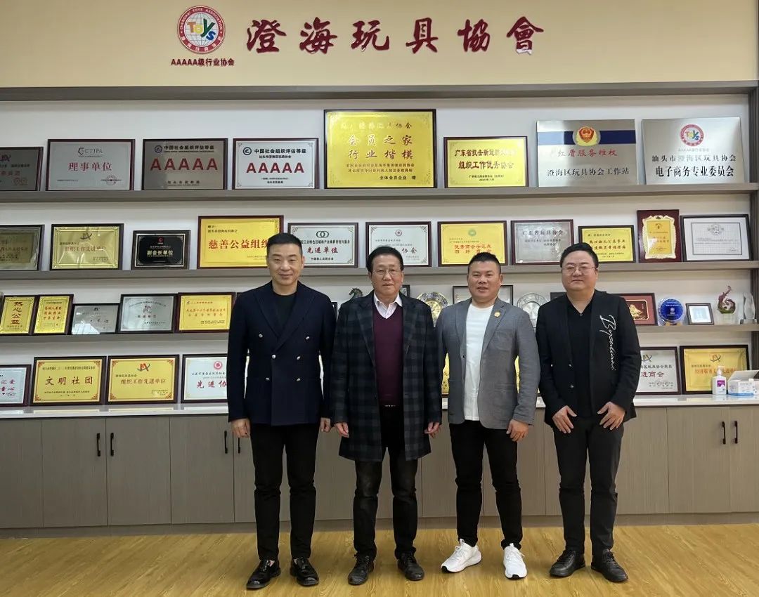 协会会长黄逸贤,常务副会长王键丰、陈烽,副会长兼秘书长张振强一行走访调研优秀理事单位,重点就设立六个专业委员会、制订产业发展行动纲要、筹备第22届玩博会易地举办、组织玩具企业抱团参加香港展和德国展等方面推介协会助力产业发展的新思路、新举措。