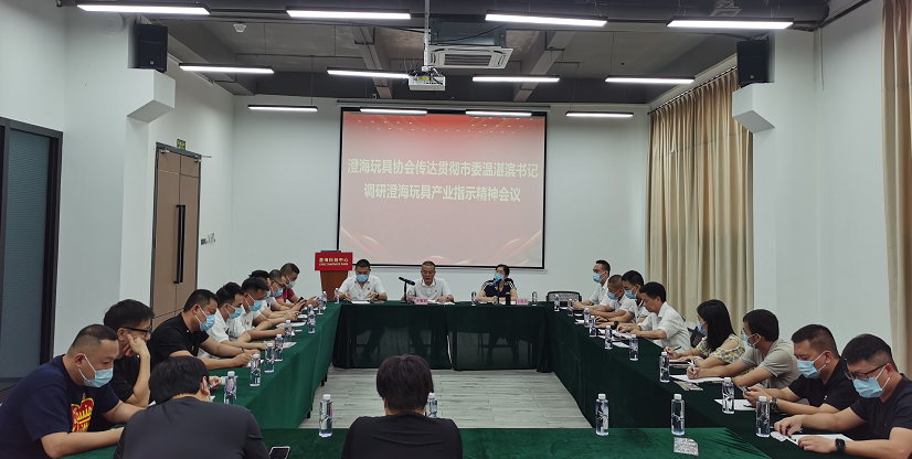 澄海玩具协会召开会议传达贯彻市委温湛滨书记调研澄海玩具产业指示精神,会上,在黄逸贤会长带领下,参会人员围绕上级领导的意见和要求,就关于如何精准规划产业发展方向和路径、加强推广使用集体商标和品牌、增强协会凝聚力和向心力等议题展开热烈的交流探讨。