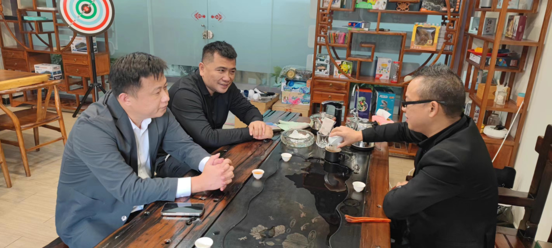 协会轮值会长黄伟腾,副会长兼秘书长张振强,副会长、贸易专委会筹建组负责人邱志宏走访会员企业,就成立协会贸易专业委员会、筹办第22届玩博会等问题广泛征求意见建议。