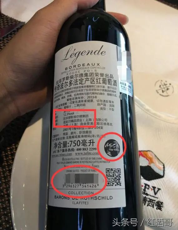 1,生产商:拉菲罗斯柴尔德集团;2.ASC,上海圣皮尔精品酒业有限公司,拉菲在中国的总代理!3.条形码3开头,代表法国,法国原装进口。