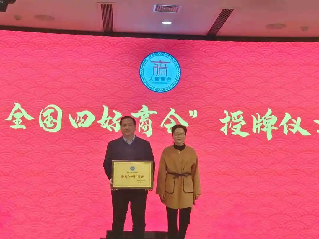 市工商联副主席许海萍为大新商会颁发了全国“四好”商会奖牌。