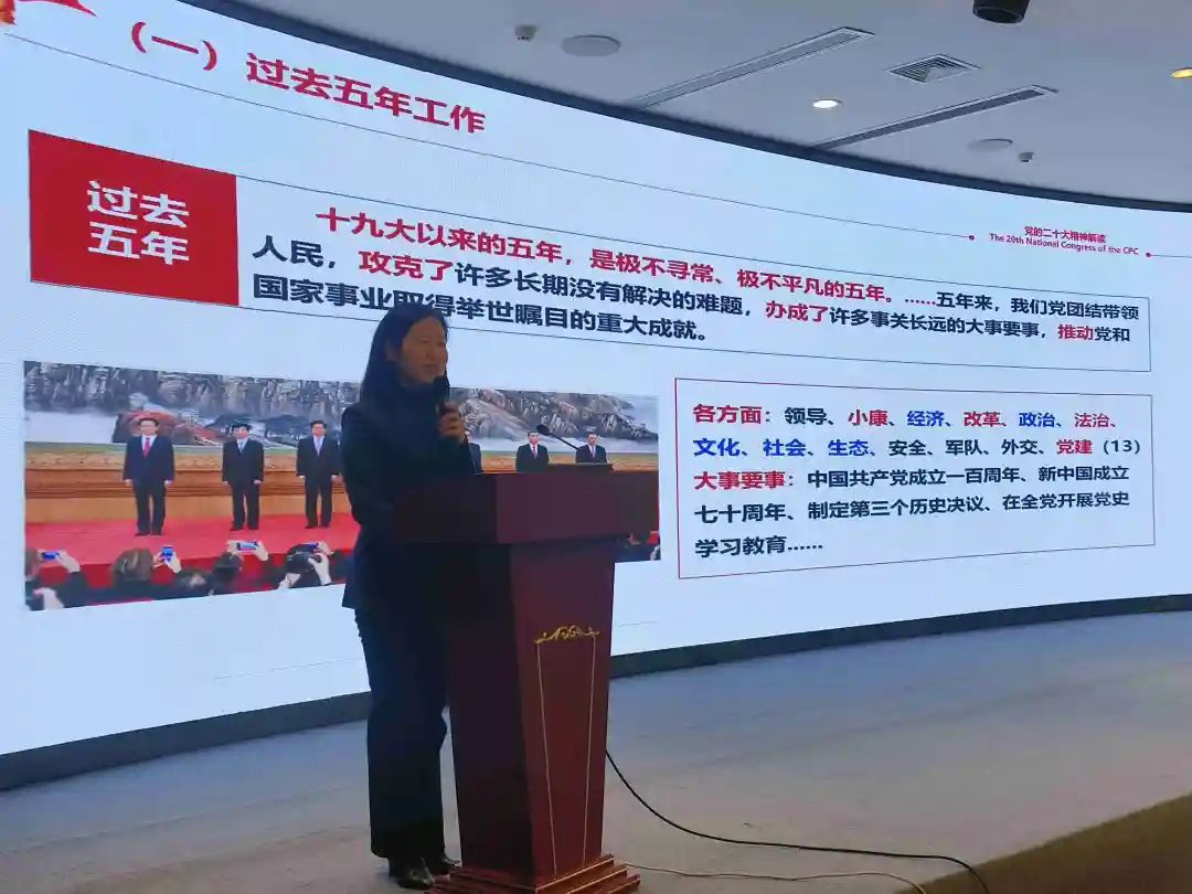 会前,市委党校培训科科长王影为全体会员上了一堂“全面建设社会主义现代化国家的行动纲领——深入学习贯彻党的二十大精神”专题党课。